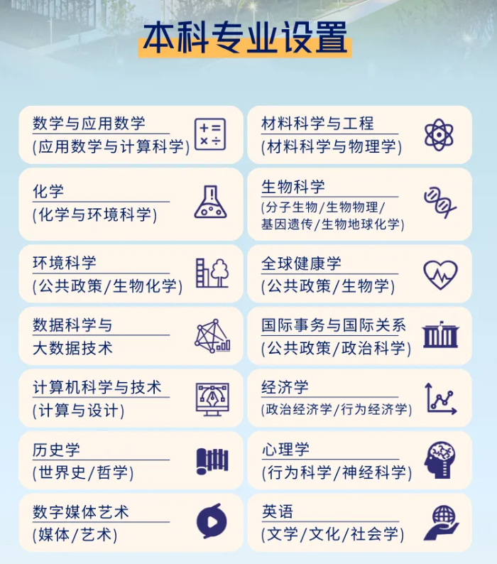 科专业共有14个,包含材料科学与工程、数学与应用数学、生物科学等,学生可在入学后大二下期之前完成自主选择专业。完整可见下表: