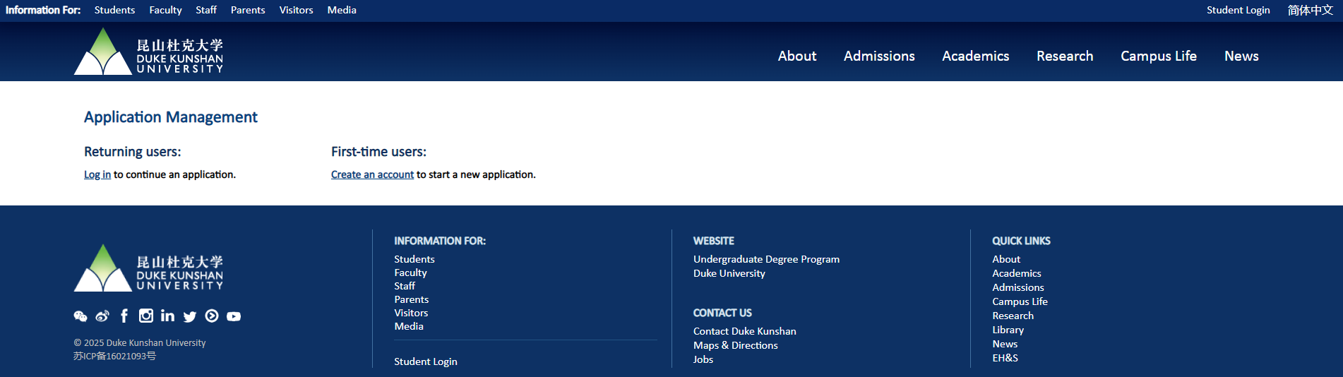 下面是本校Slate入学申请系统的官网网址:https://apply.dukekunshan.edu.cn/apply/